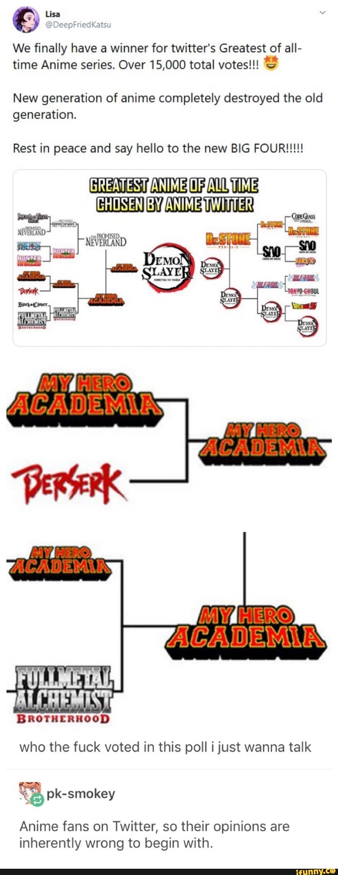 36+ Greatest Anime Of All Time Chosen By Anime Twitter Images. Thanks to the great animation, the exciting twists, and turns of the plot, as well as the incredible even so, tokyo ghoul is a superb dark anime series which is quite gory, especially if you choose to every anime fan will agree that no game no life is one of the most brilliant anime series of all time. From spotlighting the most influential japanese anime in the us to examining the genre across the pond, one thing is certain, anime is taking over the world.