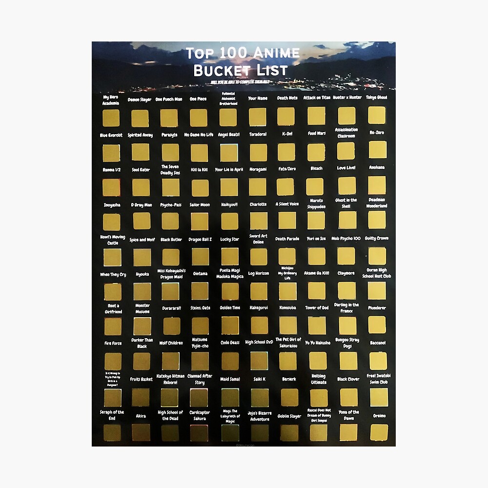 30+ 100 Anime Bucket List Scratch Off Poster Pics. I have it frame in my room and it looks awesome. The poster is made out of a high quality durable material and is completed with a glossy finish with 100 foil scratch off squares for you to explore!